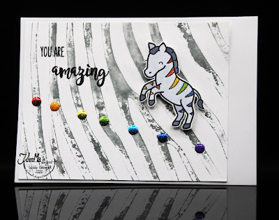 I used some uplifting rainbow-colours fot the zebra and also for the metal dots. I think "You are amazing" is a perfect sentiment for this little scene.